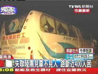 報道說,游覽車玻璃上還貼著歡迎貴賓的簡體字紙條,但車上的司機和旅客卻不知去向。工程人員表示:“只有車,受困在坍方的地方!庇浾邌枺骸叭擞性谏厦鎲幔俊惫こ倘藛T回答:“我不曉得,我沒有上去耶!