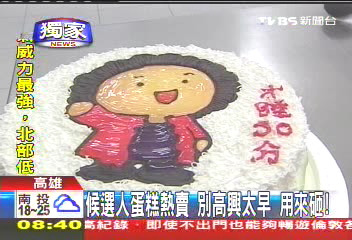 甜點(diǎn)師傅說,這些蛋糕全都客制化服務(wù),要支持還是發(fā)泄,全都可以依照顧客喜好來更改,比起一般的蛋糕,這些砸派比較便宜,8吋300元,還能邊砸邊吃,不過最近賣最好的就是楊淑君的蛋糕,至于候選人公仔蛋糕,訂單也不少,一個禮拜至少也有3到4顆,看來從蛋糕銷售量,真的也能反映時事。