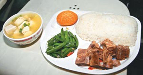 臺(tái)北監(jiān)獄提供陳水扁的第一個(gè)晚餐,包括藥燉排骨、炒青菜(四季豆)、椰子派、味噌豆腐湯共三菜一湯,臺(tái)北監(jiān)獄表示,菜色早在月初就擬定公告的菜單內(nèi)容,不會(huì)因?yàn)殛愃鈦?lái)就改變。