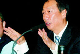 而對(duì)于股價(jià)一度跌到52.5元,郭臺(tái)銘表示,過去外資占6 成,最高達(dá)63%,去年遭逢金融危機(jī),救自己的基金,這足底長(zhǎng)期持有者,如保險(xiǎn)公司、退休、管理者一定要賣股救公司。但換一個(gè)角度,不是壞事,因?yàn)楫?dāng)好時(shí),會(huì)回來;因?yàn)橛须y時(shí),要賣可賣,不像一些小公司,賣都賣不掉。郭臺(tái)銘表示,近日許多基金經(jīng)理人告訴我,過去一年以來,可賣得掉,若未來回來,鴻海是必選股票之一。
