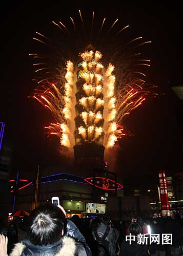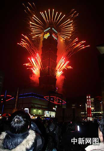 一月一日凌晨,臺(tái)北市在一0一大樓施放煙火,迎接2009年元旦的到來。吸引了大批市民觀看。 (圖文/中新社記者 陳立宇)