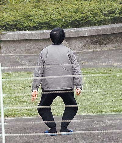 電視畫面顯示,陳水扁在放風(fēng)中,沿著看守所內(nèi)的小操場(chǎng),進(jìn)行慢跑,大約持續(xù)了20多分鐘左右;放風(fēng)時(shí),也由幾名員警戒護(hù),隨時(shí)注意周邊狀況,警察也手持望遠(yuǎn)鏡,注意四周制高點(diǎn)的狀況。