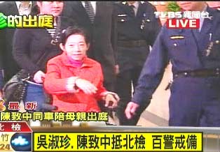 組圖:吳淑珍出庭看似精神好 招手堵耳法警跟拍(3)