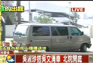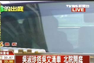 組圖:吳淑珍出庭看似精神好 招手堵耳法警跟拍(4)