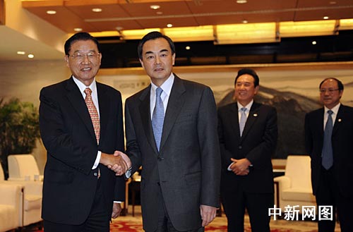 中新網(wǎng)南京4月26日電 (記者 劉舒凌)中共中央臺辦主任王毅今天下午5時許在南京會見;鶗麻L江丙坤率領的協(xié)商代表團一行。