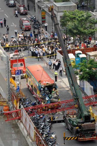 事發(fā)后,臺北市長郝龍斌已親臨現(xiàn)場關(guān)切,負責接待的旅行社主管也都趕赴意外現(xiàn)場及醫(yī)院。