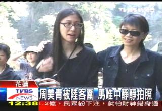 周美青一行人參觀了九曲洞、燕子口,也碰上了大陸觀光客,他們看到了周美青搶著合影留念,周美青也很配合,還和大家一起唱歌合照,展現(xiàn)隨和的一面。