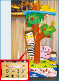中新網(wǎng)1月6日電 高雄應(yīng)用科技大學舉辦創(chuàng)意環(huán)保童話公仔競賽,原訴求童話可愛風格,但一組嘲諷陳水扁弊案的《杰克與櫻桃豆》創(chuàng)作,讓阿扁穿上編號“5235(諧音‘我愛貪污’”囚衣,意外拿下銅牌。