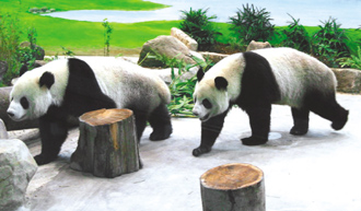 中新網(wǎng)1月20日電 據(jù)臺(tái)灣《聯(lián)合報(bào)》報(bào)道,為了讓大熊貓團(tuán)團(tuán)、圓圓在檢疫期結(jié)束后,順利公開亮相,臺(tái)北市立動(dòng)物園日前征得檢疫單位同意,讓熊貓?jiān)囎呤覂?nèi)展場(chǎng)。只見團(tuán)團(tuán)、圓圓一進(jìn)展示場(chǎng)就立刻四處排尿“畫地盤”,不僅活動(dòng)量增加,食量也跟著大增。