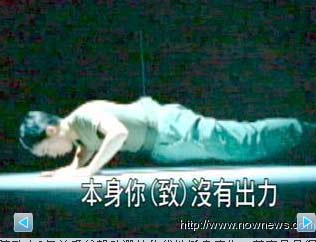 中新網(wǎng)1月21日電 據(jù)臺灣“今日新聞”報道,陳水扁之子陳致中9年前為父親助選拍的伏地挺身(俯臥撐)廣告,其實(shí)是吊鋼絲完成的,當(dāng)年幫陳致中吊鋼絲的師傅直接點(diǎn)明陳致中雙手根本沒有力,才要靠吊鋼絲來輔助。