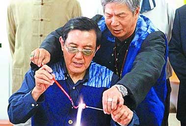 中新網(wǎng)2月9日電 據(jù)臺(tái)灣媒體報(bào)道,馬英九8日參訪臺(tái)灣工藝文化園區(qū),進(jìn)行一趟臺(tái)灣工藝之旅。馬英九在琉璃老師建議及指導(dǎo)下,親自以琉璃燒制了“一顆心”,準(zhǔn)備送給夫人周美青當(dāng)情人節(jié)禮物。