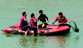 消防分隊據(jù)報,出動近十名警義消救援,因旗尾溪水很深,警義消駕駛橡皮艇靠近,小獼猴不知消防人員要救它,嚇得跳入溪中,游給警義消追并大玩“捉迷藏”。