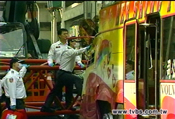 組圖:廣東團(tuán)游覽車在臺(tái)被起重機(jī)砸中