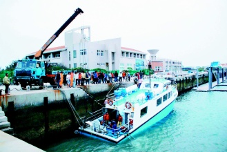 重近八十噸的“白沙之星”26日下午5時(shí)30分,搭載31名乘客及4名船員,從赤崁村駛往吉貝嶼,距離吉貝港約30米處時(shí),因退潮航道變窄,船底不慎撞及導(dǎo)航燈基座,左舷螺旋漿軸心扯落,船底破了直徑約20厘米大洞,船身后半部下沉,船長莊極樂立刻要求乘客準(zhǔn)備疏散,并勉力將船開進(jìn)吉貝港邊。