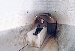 據(jù)了解,這兩條密道往東可達(dá)北安公園,全長七十八米,沿在線方裝有電燈照明設(shè)備,共有四十五個(gè)燈座,八十六個(gè)階梯;往西可抵圓山聯(lián)誼會(huì)劍潭公園,全長八十米,七十五個(gè)階梯,內(nèi)部蜿蜒曲折,一直到出口處可以見到兩扇長期深鎖的金屬門,打開后還會(huì)見到兩座高約五米的石墻遮蔽,外界根本看不出這是坑道出口。