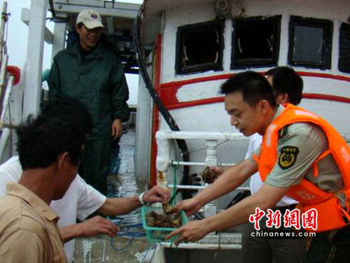 中新網惠安6月15日電 (林永傳 郭斌 陳群峰)“嗯……好吃,跟臺灣的口味差不多,謝謝你們邊防民警……”15日,福建崇武邊防派出所官兵為來轄區(qū)港口靠岸避風雨的19名臺胞送上了“閩南肉粽”,受到了臺胞的熱烈歡迎。