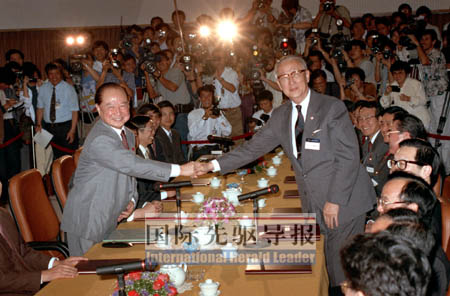 成立之初,可說是兩會協(xié)商的小陽春。海協(xié)會首任會長汪道涵和;鶗兹味麻L辜振甫,不僅達成“九二共識”,還建立了兩會定期之制度化協(xié)商機制。新加坡、上海、北京,處處留下兩會協(xié)商的身影。但經(jīng)1996年臺海危機以及1999年的“兩國論”事件,兩會協(xié)商被臺灣當局惡意中斷。2005年,辜汪二老先后辭世,留下永生的遺憾。