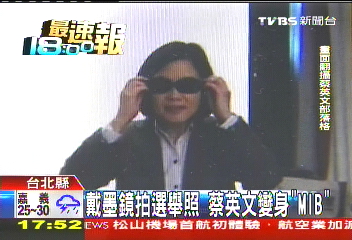 中新網(wǎng)6月15日電 據(jù)臺灣《中國時報》報道,民進黨主席蔡英文參選新北市長的選舉定裝照昨日曝光,引人注目的是,“蔡教授”這回一反拘謹形象,在攝影棚中戴起大墨鏡“耍酷”,活像“MIB星際戰(zhàn)警”但旁人怎么看都不對勁,甚至還感覺她有些“搞笑”,所以戴沒幾秒立刻換掉,讓她打趣地說,“真象是在拍雜志,蠻好玩的!