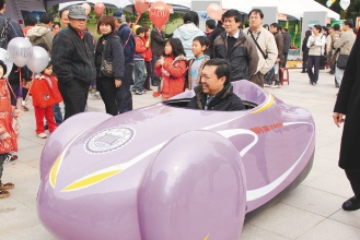 國際燃料電池車觀摩會昨天在自然科學博物館舉辦,臺中市長胡志強當場允諾明年將于水湳機場舉辦國際氫能車大賽,屆時將由明道大學規(guī)劃、市府全力支持;讓明道校長汪大永感動地說:“這真是最好的禮物”。