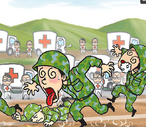 中新網(wǎng)7月23日電 據(jù)臺灣《蘋果日報》報道,臺軍后備司令部成功嶺新訓(xùn)中心21日實施馬英九核定的體能檢測,可能因為天氣熱,十多名新兵頭暈、體力不支,司令部立即將類似中暑阿兵哥送醫(yī)治療,由于有近十輛救護(hù)車進(jìn)出營區(qū),一度讓附近居民誤認(rèn)“發(fā)生重大傷亡”。后備司令部表示,不適新兵已陸續(xù)返回部隊休息,有兩人仍在醫(yī)院休養(yǎng)。