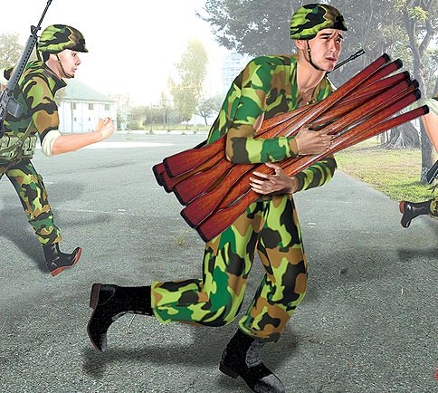 軍檢調查指出,郭景志還刻意指揮整排士兵跑來跑去,并下令蘇詠盛單獨將演習用的11把木槍(重約近15公斤)抱在身上,不論工作吃飯、上廁所,一律“槍不離身、抱一整天”。