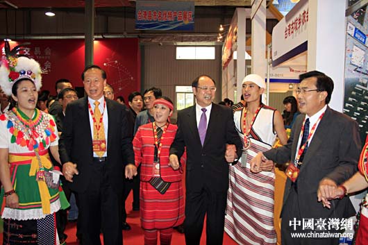 “從前的時候是一家人,現(xiàn)在還是一家人……”5月18日上午,國臺辦常務(wù)副主任鄭立中特意來到參加第十一屆“海交會”的25個臺灣縣市代表們中間,并興致勃勃和臺灣原住民兄弟姐妹們手拉手唱起“我們都是一家人”。