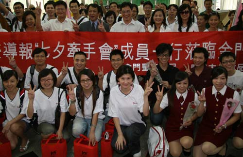 中新網(wǎng)8月26日電 今天是七夕情人節(jié),200多名廈門男女青年組團(tuán),以“小三通”為鵲橋,飄洋過海到金門,參加海峽兩岸七夕牽手會(huì)活動(dòng),尋覓有情人。