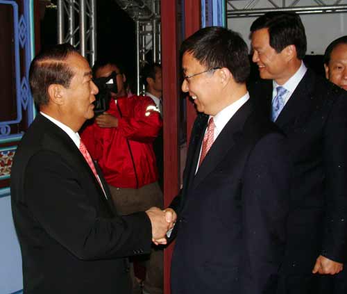 中新網(wǎng)4月9日電 據(jù)“中央社”報(bào)道,臺(tái)北縣長(zhǎng)周錫瑋和親民黨主席8日在板橋林家花園和上海市長(zhǎng)韓正等人會(huì)面,宋楚瑜說(shuō),大家要共同為兩岸和平努力,不要兵戎相見(jiàn),把和平帶給子子孫孫。