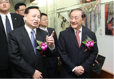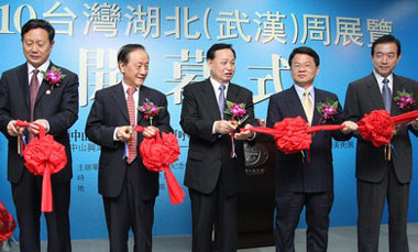 湖北省省委書記羅清泉、新黨主席郁慕明、前;鶗(huì)副董事長焦仁和、大陸當(dāng)代畫家周韶華和臺(tái)灣藝術(shù)家李奇茂等,21日上午皆出席“2010臺(tái)灣湖北 (武漢)周─荊楚文化聯(lián)展”開幕式典禮。