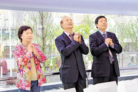 報(bào)道說,厲無畏等人在臺(tái)灣館天燈水臺(tái)下許下“國泰民安”心愿,當(dāng)天燈緩緩升起,厲無畏、夫人鄭秀珠女士不時(shí)抬頭仰望,鄭秀珠女士更闔上雙眼虔誠地合十祈福。
