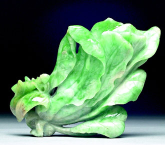 每年為故宮博物院吸引無數(shù)游客上門的“翠玉白菜”,其實(shí)并非獨(dú)一無二,光是臺(tái)北故宮就有三件“翠玉白菜”,但其中“翠玉小白菜”已有六、七年未展出,另一件“翠玉白菜花插”從未曝光過,由于故宮擬將現(xiàn)有依“編年”展覽的方式改為按“材質(zhì)”分類展出,在調(diào)整展覽之際,翠玉白菜將要搬新家。