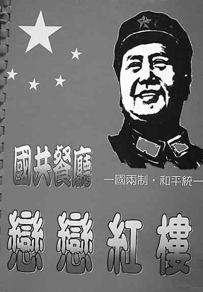 我在金門(mén)旅游時(shí),幾位年輕的郵友帶我來(lái)到金門(mén)老街。這條老街據(jù)說(shuō)已經(jīng)有幾百年的歷史了,大部分店鋪都保存著原有的風(fēng)貌。這些店鋪主要經(jīng)營(yíng)當(dāng)?shù)氐耐撂禺a(chǎn),比如金門(mén)貢糖、金門(mén)高粱酒、金門(mén)牛肉干、金門(mén)陳皮果,還有金門(mén)菜刀等,店鋪也像古代的酒店一樣,旗幡當(dāng)街飄揚(yáng),兩旁一盆盆的鮮花清香四溢,酒香花美,街道中央不時(shí)能看到百年的榕樹(shù),盤(pán)根錯(cuò)節(jié)。海風(fēng)陣陣,這真是濤聲依舊,又見(jiàn)千年的滄桑,百年的風(fēng)雨,令人心曠神怡,不知今夕何夕。信步走來(lái),我們想找個(gè)地方歇歇腳,喝喝咖啡。抬頭一看,前面“國(guó)共餐廳”4個(gè)大字極為醒目,紅旗飄揚(yáng),“走進(jìn)新時(shí)代”的歌聲清脆悅耳。我想:此時(shí)竟在何方,難道我們現(xiàn)在是在大陸嗎?難道國(guó)共雙方的代表曾在這里見(jiàn)過(guò)面嗎?我們帶著好奇心走進(jìn)了餐廳,美麗的小姐說(shuō)著流利的普通話,熱情地歡迎我們,請(qǐng)我們?nèi)胱,為我們沏茶,而且馬上遞給我們一個(gè)菜譜。這菜譜一看,全是紅色,著軍裝的毛澤東像赫然在目,還有“一國(guó)兩制,和平統(tǒng)一”的口號(hào),還印著五星紅旗。打開(kāi)菜譜一看,有不少大陸的名菜,也有毛澤東喜歡吃的紅燒肉、臭豆腐,真是令人激動(dòng)!