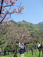 中新網(wǎng)2月24日電 據(jù)“中央社”報(bào)道,春天腳步到來(lái),臺(tái)北縣黃金博物園區(qū)今天表示,區(qū)內(nèi)百花綻放,櫻花道中的櫻花已盛開(kāi),粉紅色的昭和櫻吸引游客的目光,歡迎民眾上山“走春”。