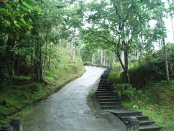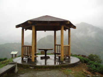 一路上爬,到達(dá)遠(yuǎn)高處,山路又盤而向下,然后再上盤往另一高崗。抵達(dá)另一高處時(shí),路旁設(shè)有一座雨量測量站,這里也是車道的終點(diǎn),前方不遠(yuǎn)處有一涼亭。由水柳腳形象商圈的牌樓至涼亭,約1.2公里,路程約25分鐘。