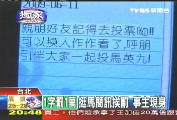 據(jù)臺灣TVBS電視臺報道,去年臺灣地區(qū)領(lǐng)導(dǎo)人選舉投票當天,一名馬英九支持者發(fā)送了一則50字短信幫馬助選,事后因違反島內(nèi)選舉規(guī)定,被罰50萬元(新臺幣,下同),成為臺灣史上最貴的短信,1字等于1萬元。這名男子黎煌雷昨天接受媒體訪問,認為傳短信是私人行為,并沒有公開助選,因此不服處罰。