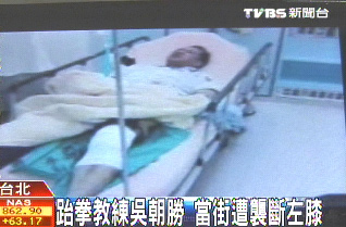 中新網(wǎng)7月16日電 據(jù)臺(tái)灣TVBS 報(bào)道,島內(nèi)跆拳道界相當(dāng)知名的教練吳朝勝,15日晚間從道館下課后突然被2名歹徒持棍棒攻擊,當(dāng)場(chǎng)倒地不起,民眾報(bào)警送醫(yī),據(jù)了解傷勢(shì)嚴(yán)重,左膝粉碎性骨折,一直到凌晨都還在手術(shù)。