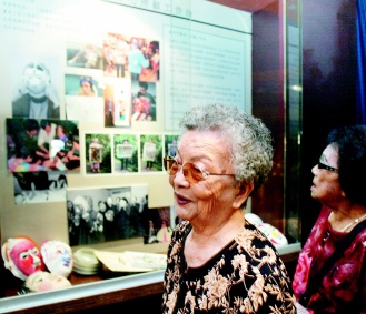 上午有兩名慰安婦到場,婦女救援基金會董事陳淑麗,在92歲的慰安婦黃吳秀妹耳邊說:“阿嬤,歡喜嗎?有另個新家了!”、“你勇敢站出來,少年就不會忘記這段歷史”,老阿嬤聽了頻頻點頭,直說: “足感心!”