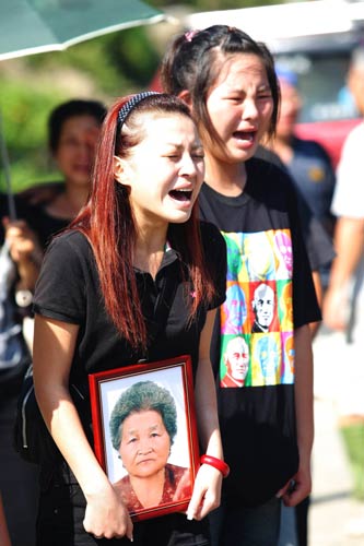 中新網(wǎng)8月15日電 莫拉克臺(tái)風(fēng)帶給臺(tái)灣嚴(yán)重災(zāi)情,高雄縣甲仙鄉(xiāng)小林村大批居民被土石流淹沒。甲仙鄉(xiāng)公所今天上午請千佛山協(xié)助為小林村9到18鄰遭淹埋的罹難村民,舉辦頭七法會(huì),現(xiàn)場擁進(jìn)千余名家屬,哭聲不斷,場面令人鼻酸。