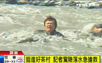 中新網8月17日電 據臺灣TVBS報道,屏東“好茶村”在風災中受重創(chuàng),多位記者隨村民挺進家園,希望能為外界報道受災情況,沒想到在橫渡“隘寮溪”時,一名攝影記者不小心被大水沖走,情況非常驚險,還好好茶村民經驗豐富,立刻到下游淺水處一把拉住這名記者,人平安無事,但他手中緊握不放的攝影機卻毀了。