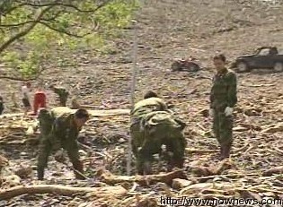 中新網(wǎng)8月18日電 據(jù)臺灣“今日新聞”報(bào)道,18日臺軍官兵持續(xù)在高雄縣六龜鄉(xiāng)新開部落進(jìn)行地毯式搜索,尋找罹難者遺體。士兵們頂著太陽在土石堆中慢慢嗅聞,并且一一做記號,等著“怪手”來挖。