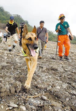 臺軍士兵努力尋尸的勇氣令人贊賞,但外界也不解,難道臺灣沒有搜救犬嗎?廖了以也相當納悶,認為“叫人趴在地上找臭味不太對吧!”昨日上午立刻指示特種搜救隊及高雄市消防局火速以直升機載送三條專業(yè)搜救犬投入救援。