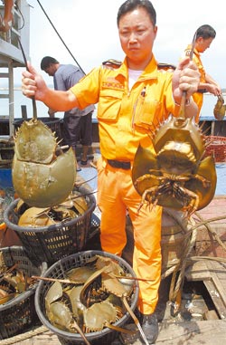 中新網(wǎng)9月18日電 據(jù)臺灣《中國時(shí)報(bào)》報(bào)道,來自福建龍海的“閩龍漁0266號”漁船昨天越界進(jìn)入金門,濫捕120只已有繁殖能力的成鱟,驚動正進(jìn)行人工培育的金門縣水試所,在標(biāo)示紀(jì)錄后全部放流重返大海,11名落網(wǎng)漁民則被移送法辦。