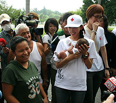 林志玲由臺(tái)灣紅十字會(huì)人員陪同,上午到高雄縣陸軍官校營(yíng)區(qū)擔(dān)任半天志愿者,與小朋友、殘障災(zāi)民互動(dòng)。很多民眾很興奮,利用行動(dòng)電話的照相、錄像功能拍下第一線接觸的畫面。