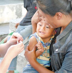 臺南縣南化鄉(xiāng)羌黃坑部落二十四戶災民得知可優(yōu)先免費施打疫苗,反應不一;老人家樂意施打,年輕人多半覺得可有可無或拒絕施打。“疾管局”表示,昨天因故未能接種的災民,日后仍可到衛(wèi)生所優(yōu)先接種。
