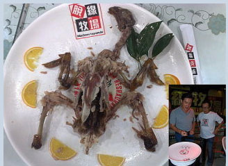 據(jù)臺灣TVBS 報道,“馬英九吃過的桶仔雞”?這只雞整只被啃得干干凈凈,只剩下骨架,十足展現(xiàn)馬英九節(jié)能減炭、愛物惜物的特色,來源無庸置疑,只是這雞怎么會落入賣家手中。