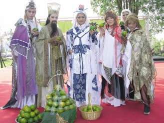 中新網(wǎng)11月6日電 據(jù)臺灣《聯(lián)合報》報道,嘉義縣竹崎鄉(xiāng)長王焜5日打扮成臺灣布袋戲頭號人物“素還真”,為7、8日的竹崎椪柑節(jié)宣傳,強調(diào)竹崎椪柑豐收又好吃,且將選出“椪柑美人”、“椪柑大力士”,8日晚會還有千手觀音等精彩節(jié)目。