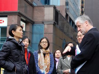 臺灣藝術(shù)家林明弘當前正在溫哥華美術(shù)館展出臺灣花布。美術(shù)館外三大幅色彩鮮艷的臺灣傳統(tǒng)花布,吸引不少游客拍照。