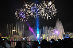 中新網(wǎng)2月21日電 據(jù)“中央社”報(bào)道,2010高雄燈會藝術(shù)節(jié)20日晚登場,由蕭萬長與高雄市長陳菊共同點(diǎn)燈,海上主燈“高雄;ⅰ贝钆渌、雷射與高空煙火的聲光效果,絢爛奪目,前來觀賞民眾,萬頭攢動。