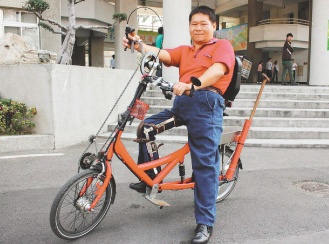 “我終于可以騎自行車兜風了!”他說,曾5度騎摩托車環(huán)島,現(xiàn)在也可以騎自行車環(huán)島;因手動自行車非常耗體力,最近他在自行車后方加裝電動裝置,電池充完電可以跑六、七個小時,手動騎累了,就轉(zhuǎn)換成電動。