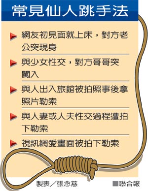 中新網(wǎng)3月17日電 據(jù)臺灣《聯(lián)合報》報道,“要不要一起賺大錢?”16歲的陳姓援交女上網(wǎng)發(fā)現(xiàn),男子徐德欽、謝丁玄征求仙人跳女主角,認(rèn)為比援交好賺而加入;從去年6月起,這伙人以援交方式設(shè)局仙人跳至少6次,詐財上百萬元(新臺幣,下同)。